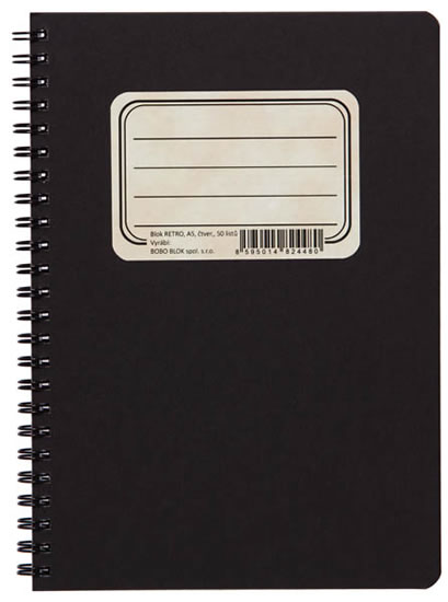 Kroužkový blok RETRO A5, čtvereček, 50 listů, černý