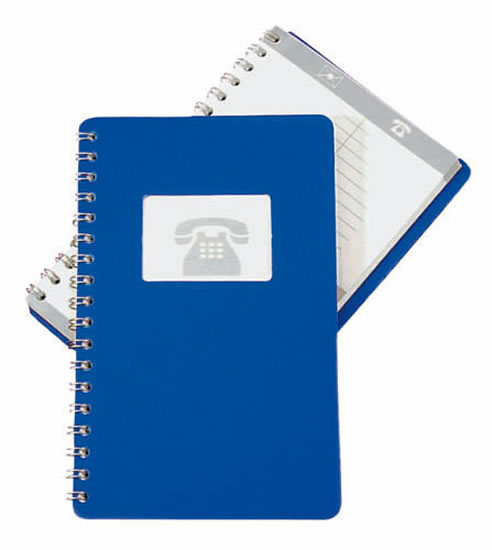 Kroužkový telefonní zápisník s plastovými deskami 100 x 160 mm, modrý