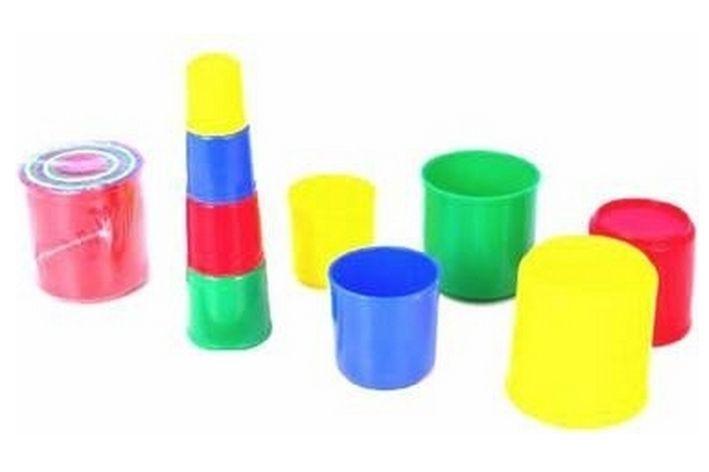 Kubus pyramida skládanka kulatá plast asst 4 barvy 9ks v sáčku 9x9x8cm 12m+
