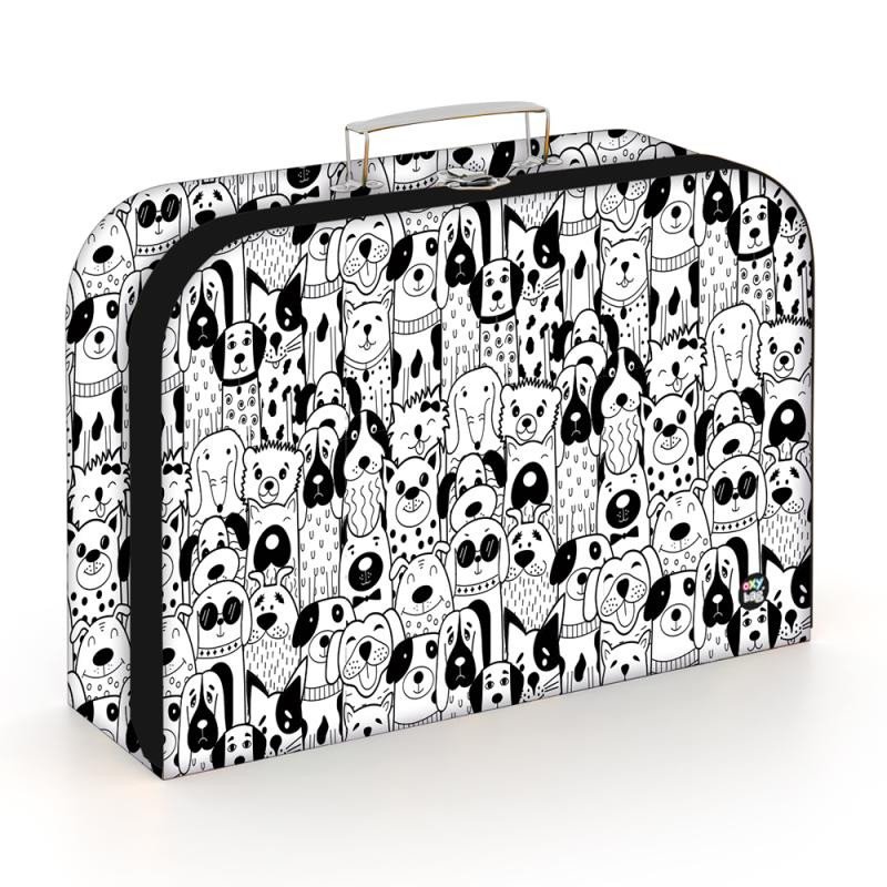 Lamino kufřík na výtvarnou výchovu. Do kufříku se vejde formát A4. Materiál: papír, lepenka, kovový zámeček, kovové nýty.