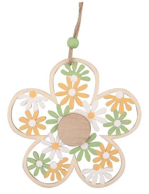 Kytka vyřezávaná ze dřeva na zavěšení 11,5 cm