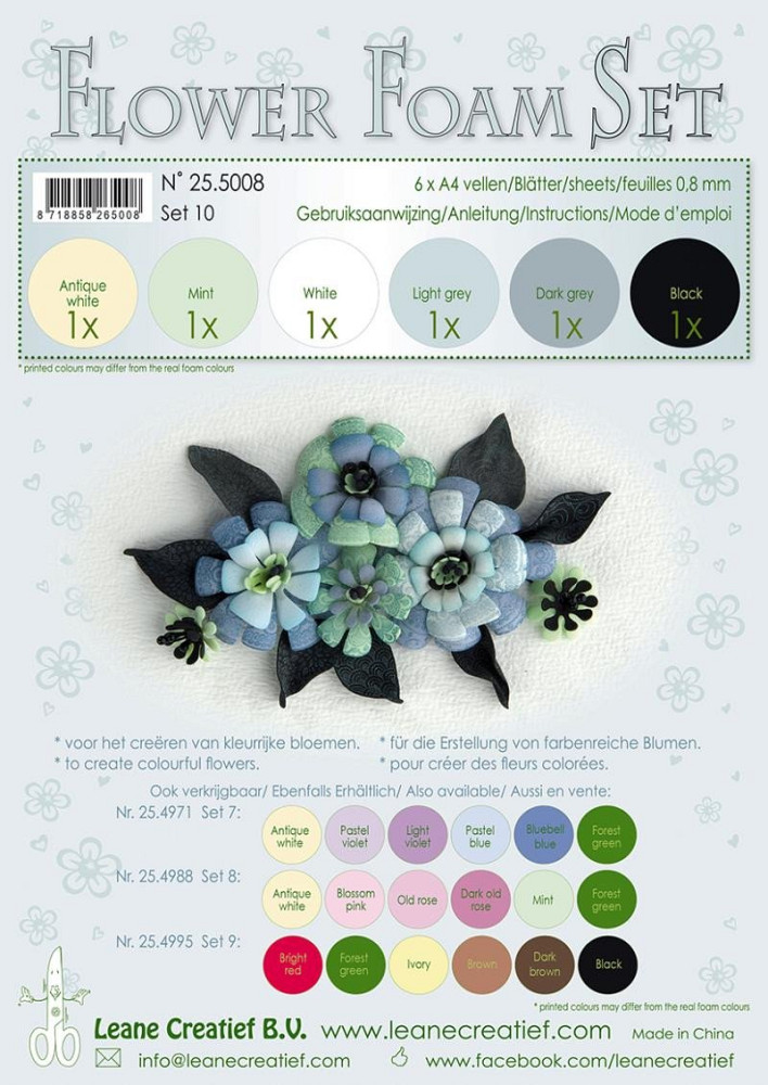 sada speciálních pěnovek na výrobu květin, formát A4 (21x29,7cm), tloušťka 0,8mm, 6 barev. Měkká pěnová guma s porézní strukturou, ze které můžete snadno různé tvary vystřihovat, vysekávat raznicemi nebo vyřezávat - i na BigShote. Výřezy můžete využít k dalšímu papírovému nebo jinému tvoření - pro dětské kreativní dílny, ale i na scrapbooking, či cardmaking. Její velkou výhodou a speciální vlastností je tvarovatelnost za tepla - po nahřátí např. žehličkou (na stupeň 1-2) ji můžete snadno tvarovat a vytvářet z ní např. kytičky a listy, které budou vypadat jako živé... Foamiran můžete i natírat barvou, a tak přizpůsobit svým projektem. Pro barvení můžete použít např. akrylové, olejové a pastelové barvy, ale také pastelky. Můžete tak překrýt i případné nerovnoměrnosti základního odstínu. Foamiran absorbuje vodu jen minimálně, což je jeho další výhodou. Hotové výrobky můžete využít i v exteriéru, protože odolávají povětrnostním vlivům.
