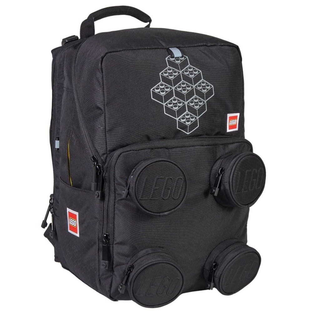 Školní taška Petersen vyniká přední kapsou ve tvaru zmenšené LEGO kostky 2x2. Ergonomický zadní panel ze vzdušné síťoviny s výškově nastavitelným systémem zajišťuje optimální přizpůsobení. Ramenní, hrudní a zvedací popruhy poskytují maximální komfort a přilnutí k tělu. Vnitřní uspořádání zahrnuje elastický popruh na knihy, přihrádku na notebook nebo těžké složky a hlubokou přední kapsu ideální na svačinu. Kulaté kapsy na zip jsou vhodné pro mobilní telefon či dlouhé tužky, boční kapsa na láhev zajišťuje praktické uložení. Bezpečnost podporují reflexní prvky na všech stranách, zatímco pevné voděodolné dno chrání obsah a usnadňuje čištění.