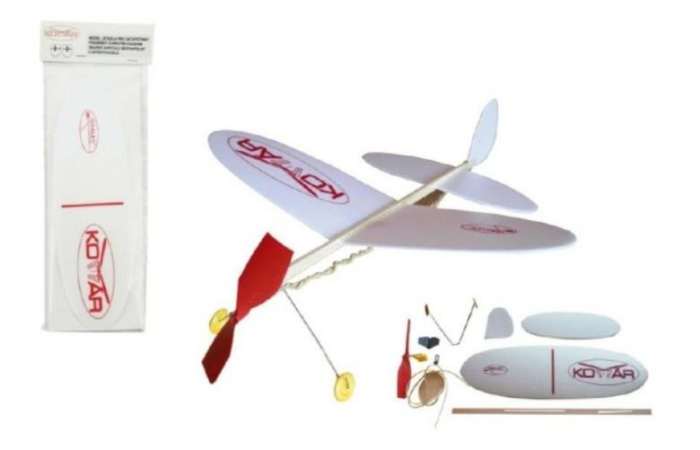 Komár letadélko na gumu Igralet,původní typ,s podvozkem,polystyrenové křídlo. Model Letadla pro začátečníky poháněný gumovým svazkem snadno a rychle sestavitelný z hotových dílů. Délka 38 cm, rozpětí 31 cm. Model který si ze 70-80 let pamatují snad všichni co tu dobu zažili...