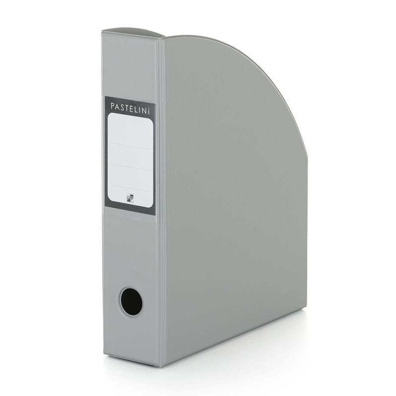 Stojan na časopisy a dokumenty formátu A4, se štítkem pro popis obsahu, šíře hřbetu 70 mm. Moderní pastelové barvy.