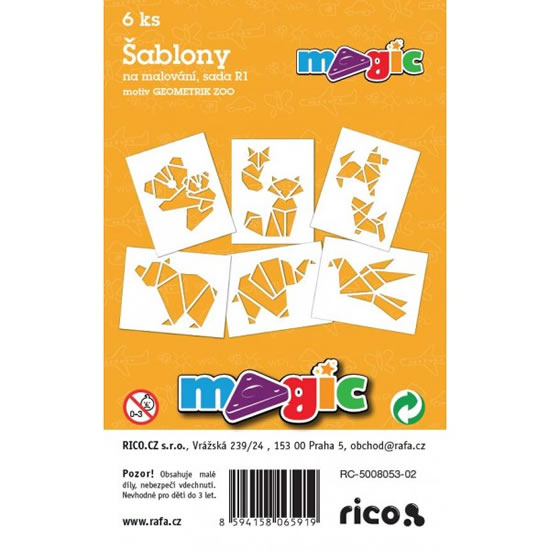 Sada 6ks papírovéové šablony na malování. Materiál bílý karton 220g. Doporučujeme pro malování s magickými voskovkami (technika frotáž), vhodné i pro tupování s temperami, pro malování s foukacími fixami nebo techniku malování plastelínou. Rozměry 11x14cm.