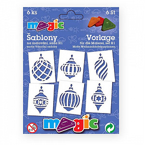 Sada 6ks papírovéové šablony na malování. Materiál bílý karton 220g. Doporučujeme pro malování s magickými voskovkami (technika frotáž), vhodné i pro tupování s temperami, pro malování s foukacími fixami nebo techniku malování plastelínou. Rozměry 11x14cm.