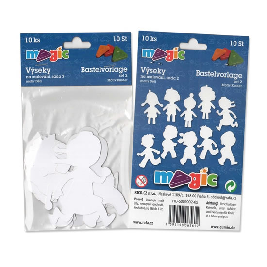 Sada 10 ks výseků s postavičkami. Materiál bílý karton 220g. Ideální pro malování - frotáž s magickými voskovkami. Nevhodné pro děti do 3.let, obsahuje malé dílky. Rozměry obrázků cca 4cm x 7cm.