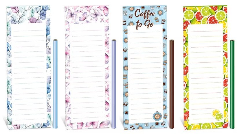 Magnetický blok 7,5 x 24 cm s tužkou 60l. mix 2