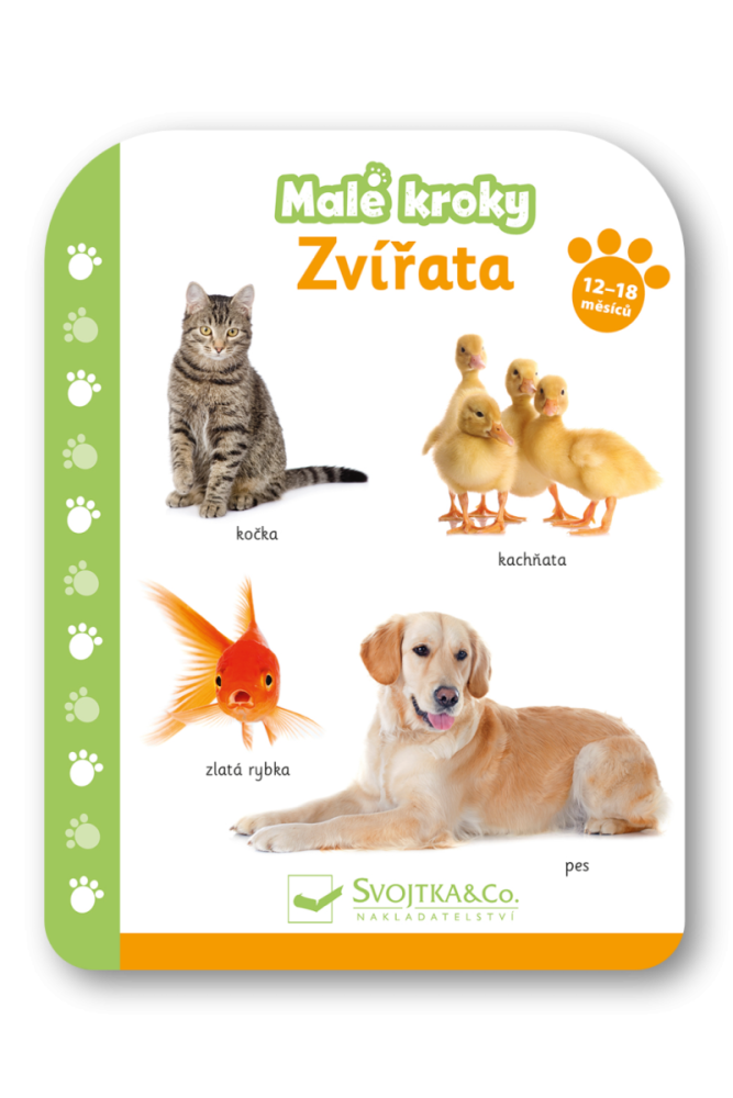 Nechte děti pozorně si prohlížet obrázky. Pozná váš malý zvědavec morče od želvy a ví například, kde má kočka ocas? Umí ukázat na dlouhé uši králíka? V této knížce z řady Malé kroky se děti interaktivním způsobem zapojí do poznávání a pojmenovávání zvířat a jejich mláďat. Rozšiřujte základní slovní zásobu hospodářských, divokých i exotických zvířat vašeho děťátka na názorných příkladech a otázky a úkoly v dolní části stránky pomohou s hlubším pochopením slov a děti si tak více a rychleji osvojí jejich význam. Pevné stránky, výrazné barvy a krátké popisky dětem učení a poznávání zvířat usnadní a vy si spolu užijete krásné a zábavné chvíle nad touto milou knížkou s množstvím názorných fotografií.