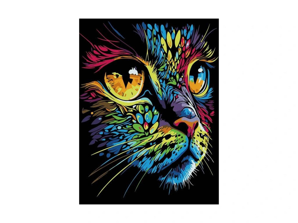 Magická kočka – obraz na černém plátně (30 x 40 cm), malování podle čísel
