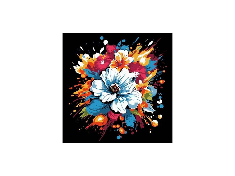Přeneste si do svého domova eleganci a hravost s tímto ručně malovaným obrazem. Na černém plátně o rozměrech 30 x 30 cm se rozzáří nádherná kytice květin, jejíž syté barvy vytvářejí dramatický a moderní efekt.