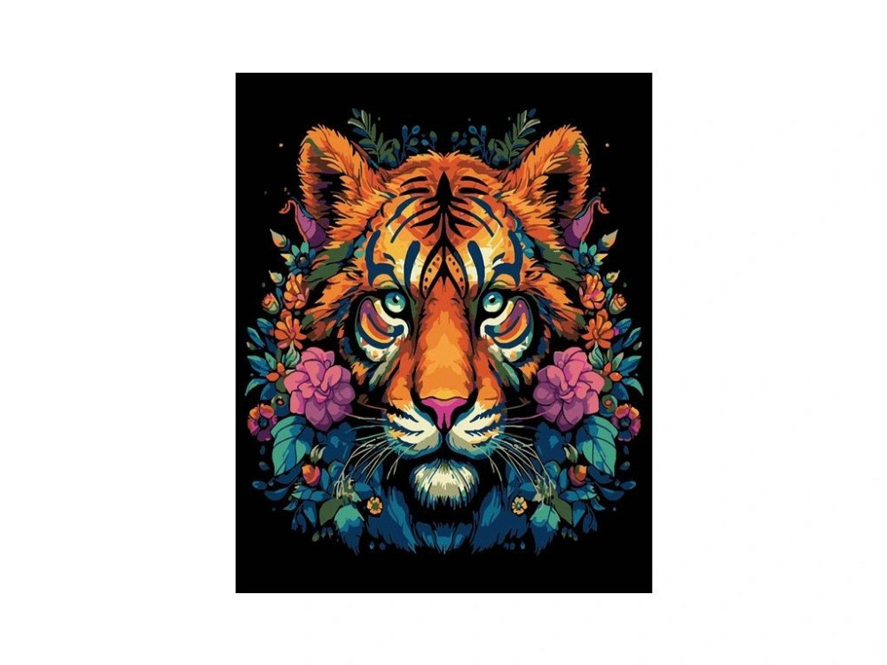 Malování na plátno Tygr v květinách 40x50 cm