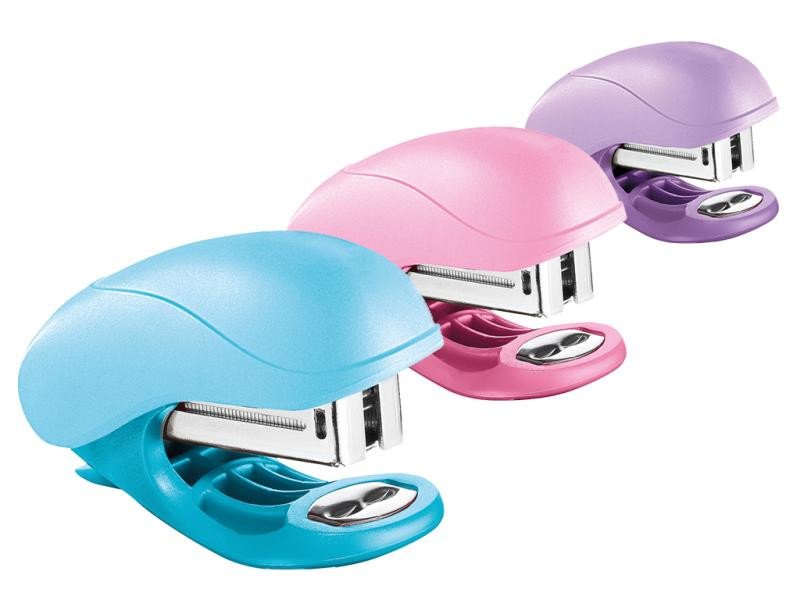 Malá sešívačka. Hloubka vkládání papíru 29 mm. Integrovaný rozešívač, drátky No. 10. Na 15 listů. Vyrobeno z 80% post-industriálního recyklovaného plastu. Balení obsahuje 400 ks drátků. Mix barev.