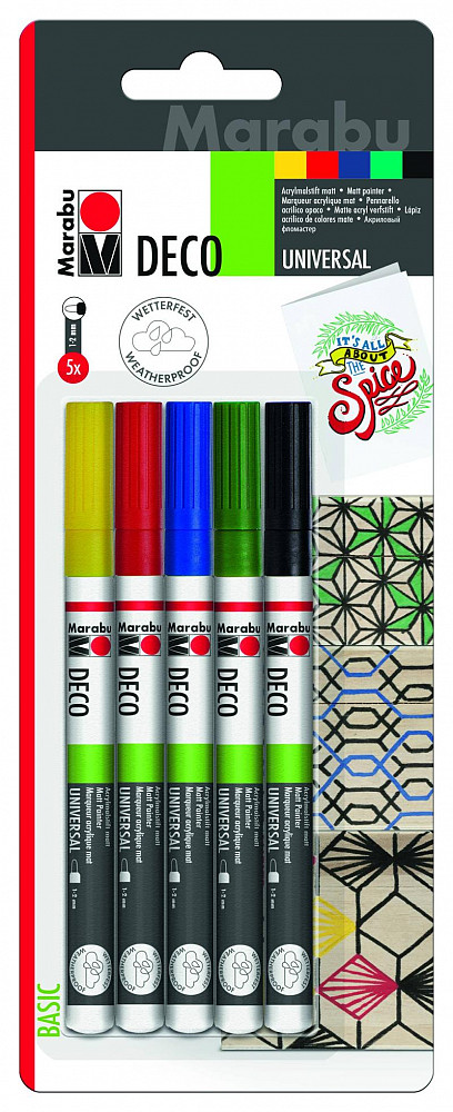 Vše je možné u Deco Painter. Tento matný akrylový popisovač má vysokou úroveň krytí a je ideální pro všechny savé povrchy. Barvy jsou světlostálé a odolné vůči povětrnostním vlivům, takže jsou skvělé pro venkovní dekorace. Popisovač je také ideální pro děti, protože je na vodní bázi a rychle schne. Sada 5 obsahuje barvy Sunshine Yellow, Cherry, Mint, Lapis a Black.