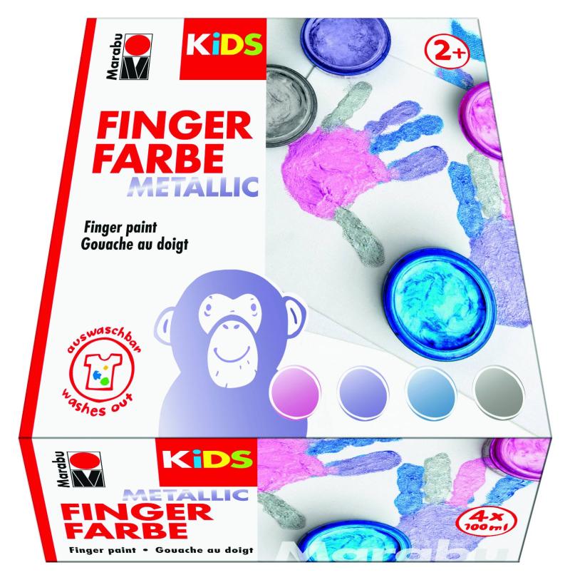 Obsah: 4 x Fingerpaint 100 ml (Metallic-Rose 733, Metallic-Violet 750, Metallic-Blue 752, Metallic-Silver 782)