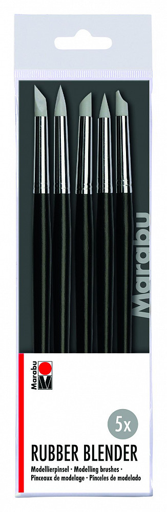 Sada modelovacích štětců s různými silikonovými hroty (kulatými, plochými a šikmými) Rukojeti štětců vyrobené ze dřeva s certifikací FSC.
