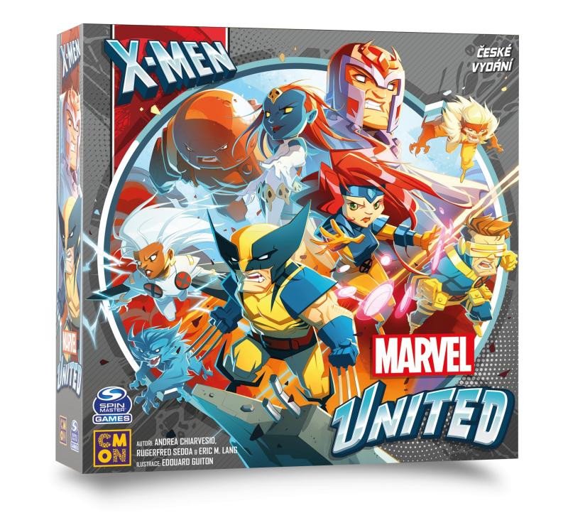 Samostatně hratelné rozšíření hry Marvel United. V bitvě za přijetí mutantů se Bratrstvo mutantů cítí býti nadřazené obyčejným lidem a osnuje zločinné plány,jak podřídit lidstvo své vůli. X-Meni však zastávají princip, že mutanti a lidé by spolu měli žít jako sobě rovní a společně se této výzvě postaví. Ve svém zoufalém boji a snaze ochránit nevinné vyrazí do celého světa. Pokusí se hrozbám zabránit a jednou pro vždy se padouchům postavit. Vžijte se do rolí ikonických X-Menů a spolupracujte ve snaze zastavit spiknutí mocného padoucha ovládaného buď hrou, nebo soupeřem. Každý padouch přináší jedinečné spiknutí a hrozby. Spouští různé efekty a napříč lokacemi hrdinům chystá výzvy. Hrdinové musí pečlivě vybírat, které karty ze svého jedinečného balíčku zahrají. Ve snaze o nemožné nejde jen o různé akce a superschopnosti, ale i kombinaci akcí s jinými hrdiny. Vytvořte svou příběhovou linku, spojte síly a zachraňte situaci! Obsah balení: •6 figurek hrdinů •2 figurky anti-hrdinů •2 figurky padouchů •96 karet hrdinů •4 desky padouchů •48 karet spiknutí •24 karet hrozby •12 karet superpadoucha •8 superhrdinských karet •8 lokací •1 přehled misí •4 karty misí •3 karty výzev •154 žetonů •1 ukazatel padoucha •1 pravidla Specifikace hry: •Věk: 7+ •Pro 1-5 hráčů •Doba hraní: cca 40 minut