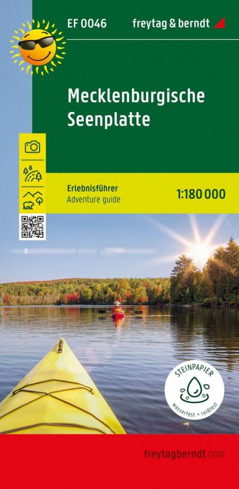 Tento průvodce dobrodružstvím, který zachycuje Lake District Mecklenburg od Schwerinu do Neustrelitzu, jasně ukazuje, že se jedná o rekreační oblast! Četné vlajky označují turistické atrakce, které jsou podrobněji popsány na zadní straně. Kromě jednotlivých nabídek pronájmu a přepravy lodí, prázdninových zařízení a dobrodružných bazénů jsou také představena celá místa s jejich volnočasovými aktivitami. Dokonce ani kulturní nabídky, jako jsou muzea, chybí z Mecklenburg Lake District.
