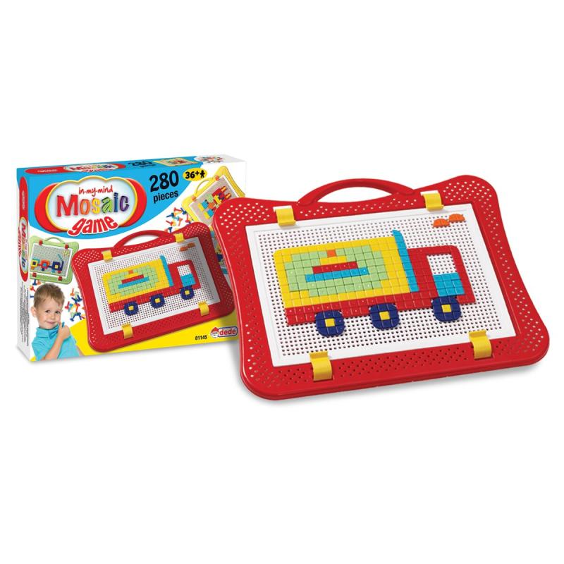 Mozaiková hra rozvíjí jemnou dětskou motoriku, tvořivost a fantazii. Obsah balení tvoří děrované hrací desky a 280 ks barevných kolíčků s hlavičkami různých barev, průměrů a tvarů. Pomocí těchto kolíčků, které se zasazují do otvorů v hrací desce, tvoří dětí různé obrázky nebo vzory. Vyrobeno z plastů špičkové kvality. Rozměr obalu je 375x65x295