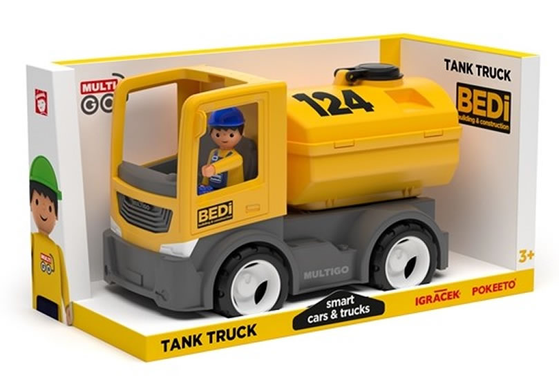 Nepostradatelné nákladní auto na převoz kapalin a sypkých materiálů. Cisternu lze rozebrat a uvnitř vyčistit. Balení obsahuje řidiče Igráčka.