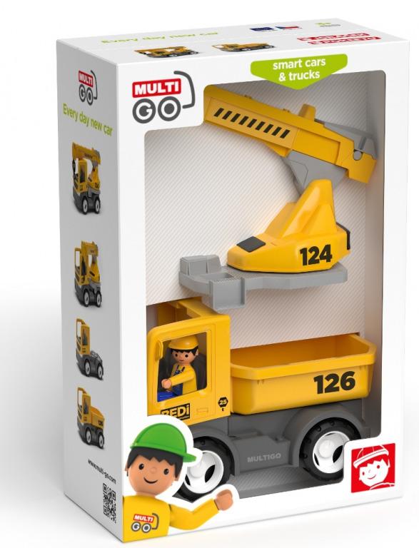 Plně funkční jeřáb s navijákem pomůže Igráčkovi naložit náklad na valníček a odvézt tam, kde je třeba. Praktické balení 2+1 obsahuje auto s nástavbou jeřábu, výměnnou korbičku valníček a Igráčka stavbaře.