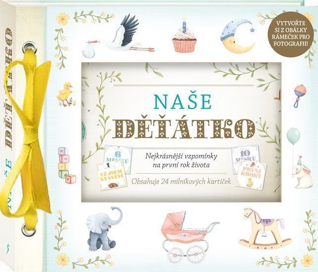 Hledáte knihu pro vaše děťátko? Tak jste právě narazili na tu pravou! Tato kniha je plná roztomilých ilustrací a originálních dětských říkanek, nechybí samozřejmě také místo na fotografie a spousta otázek k vyplnění. Obálka slouží zároveň jako fotorámeček, do kterého si můžete vložit vlastní fotku a vytvořit si tak jedinečnou knihu na všechny vzpomínky z prvního roku vašeho děťátka. Navíc obsahuje 24 oblíbených milníkových kartiček pro zachycení jedinečných momentů, jako je první zoubek, první kroky, první noc bez vzbuzení nebo první slovo.
