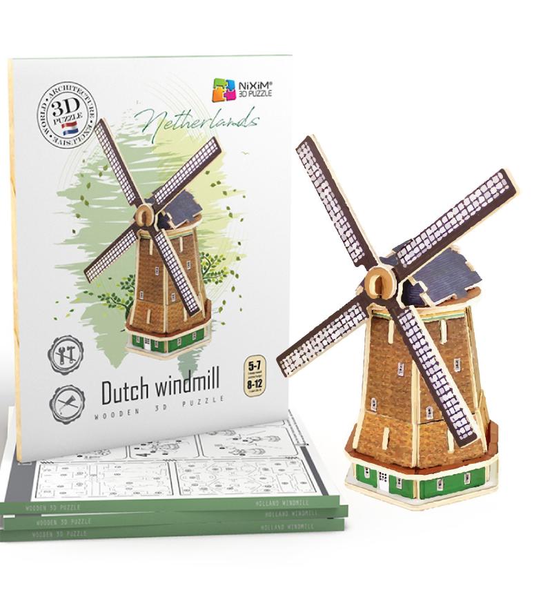 NiXiM Dřevěné 3D puzzle - Holandský větrný mlýn