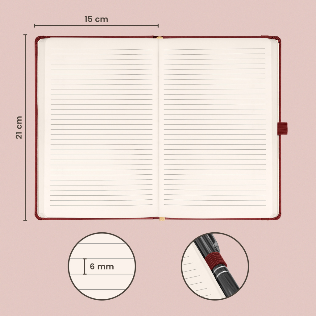 Klasický linkovaný notes ve vínové barvě s klasickým a elegantním povrchem.