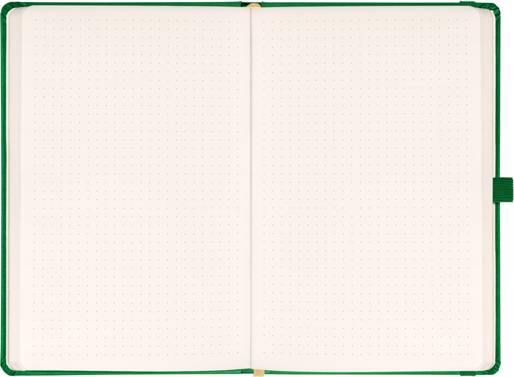Tečkovaný notes Aprint v zeleném provedení. Klasika i elegance, nejžádanější povrch, na který lze snadno razit firemní loga s jemnou strukturou.