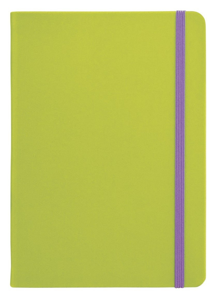 Designový zápisník v limetkové barvě doplněný elegantně laděnou fialovou uzavíratelnou gumičkou nesmí chybět tam, kde je potřeba si něco poznamenat nebo nakreslit!