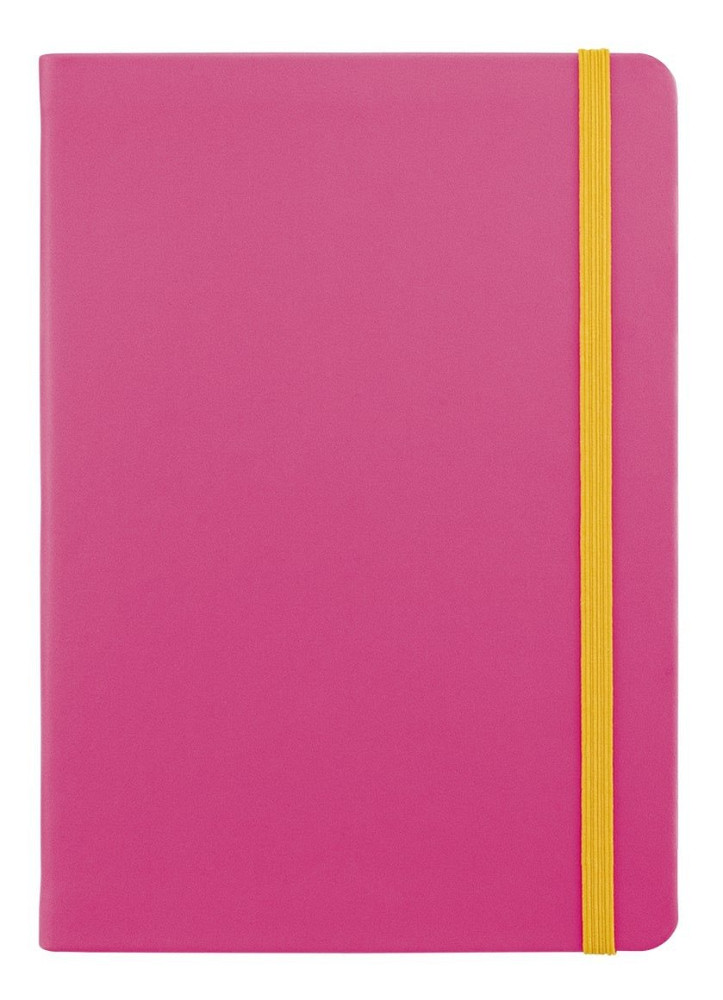 Designový zápisník v růžové barvě doplněný elegantně laděnou žlutou uzavíratelnou gumičkou nesmí chybět tam, kde je potřeba si něco poznamenat nebo nakreslit!