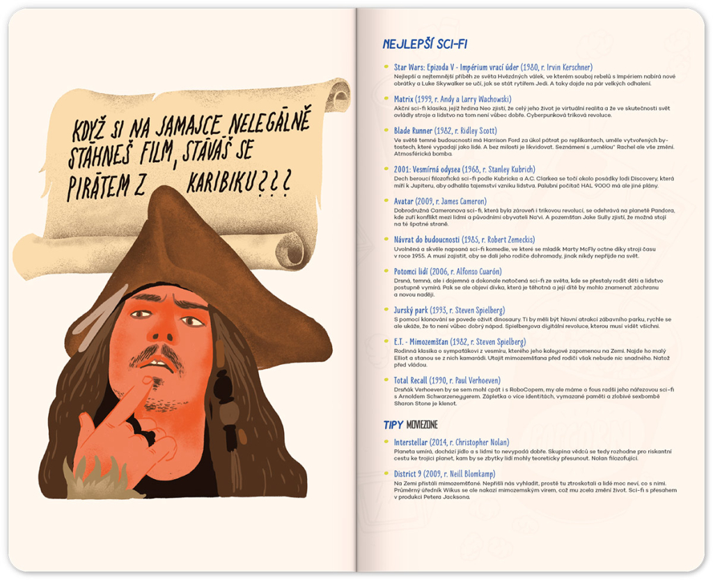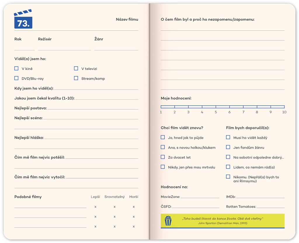 Zápisník pro všechny, kteří žijí filmem! Zápisník filmožrouta, který vznikl ve spolupráci s Moviezone pobaví hláškami i neotřelými ilustracemi filmových hrdinů.