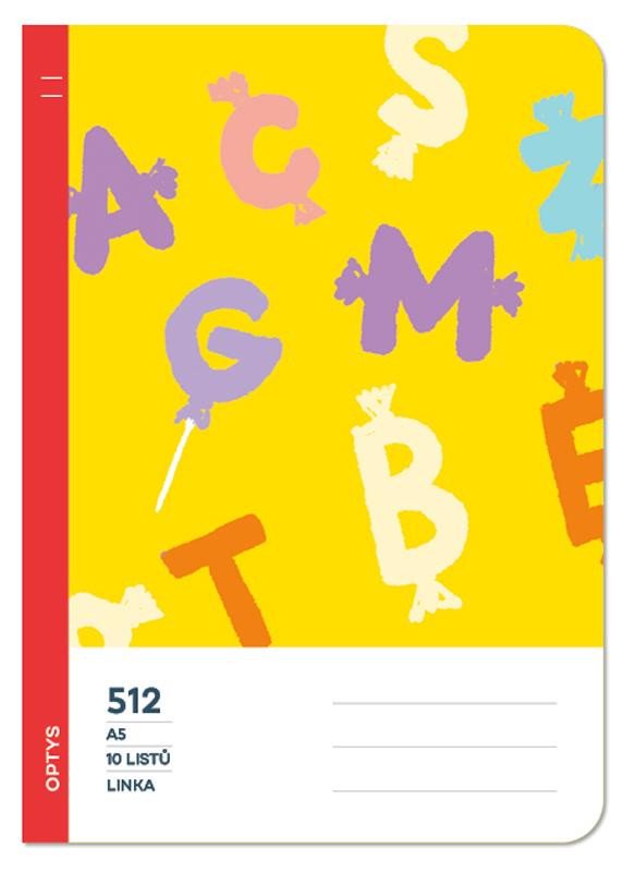 Sešit 512 je určen pro děti na nižších stupních základní školy. Formát A5 má linku o šířce 16 mm. Sešit o 10 listech má motiv písmene. Piktogram na hřbetu dětem pomáhá rozlišit, jestli je sešit vhodný do matematiky, psaní, prvouky nebo jiného předmětu. Učitelům tak usnadňuje komunikaci se žáky. Tento školní sešit OPTYS, stejně jako celou řadu, jsme vyvinuli ve spolupráci s grafickými designéry i těmi nejpovolanějšími – učiteli. Díky tomu je maximálně funkční. Zároveň má moderní design, který se žákům zalíbí. Z piktogramů na hřbetu a obálky sešitu hned vidíte číslo, formát, počet stran i to, zda je sešit čistý, linkovaný, čtverečkovaný. Česká výroba v naší tiskárně Optys zaručuje špičkovou kvalitu i dostupnost produktů.