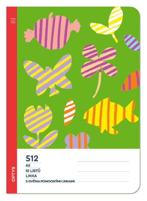 Optys Školní sešit 512 bezdřevý, s dvěmi pomocnými linkami 16 mm - příroda