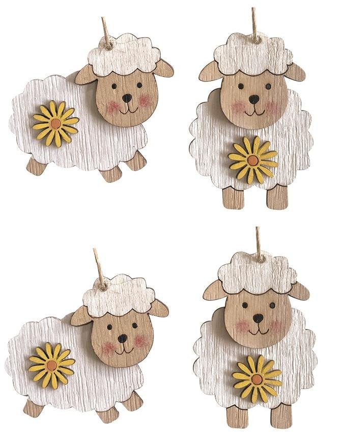 Ovečka na zavěšení dřevěná 5 cm 4ks