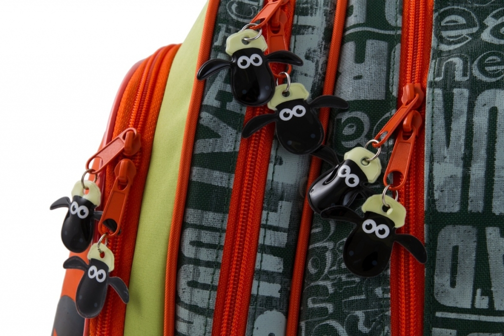 • Batoh je opatřen reliéfním PVC logem Shaun the Sheep na přední kapse a přívěšky na zipech ve tvaru ovečky