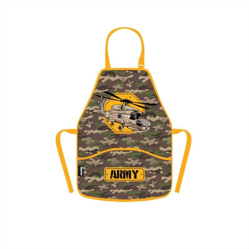 Zástěra do výtvarné výchovy či na jiné tvořící aktivity. Zapínání na sponku kolem krku (délka max. 50 cm), v pase šňůrky na zavázání (max. 80 cm). Vpředu dvě prostorné kapsy. Materiál 100% polyester. Rozměr: 150x250x15mm, Hmotnost: 0,063kg