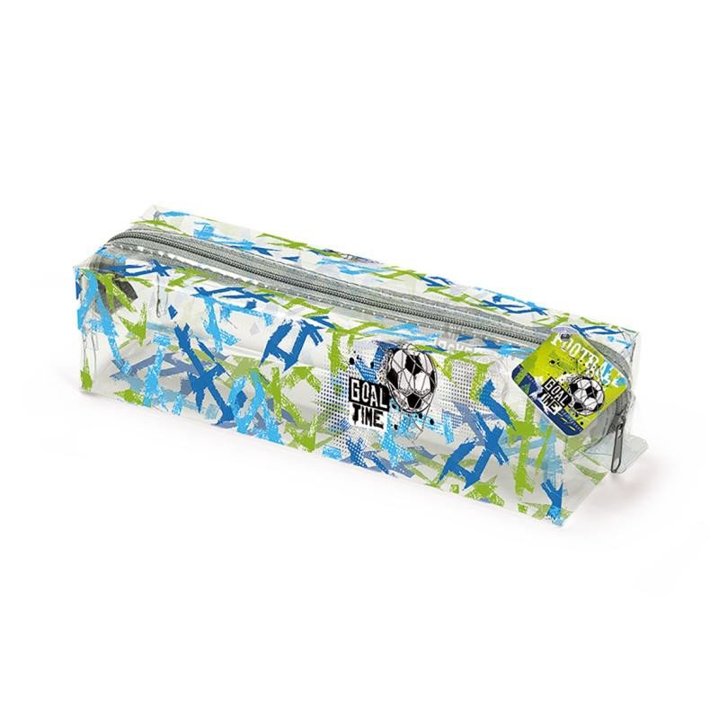 Průhledný penál, pouzdro na tužky nebo pera s potiskem GOAL TIME v designech školských linií ARGUS, vhodné i jako pouzdro na nabíječku k telefonu, sluchátka, nabíječku na smart hodinky nebo jiné drobnosti do batohu, tašky nebo aktovky.