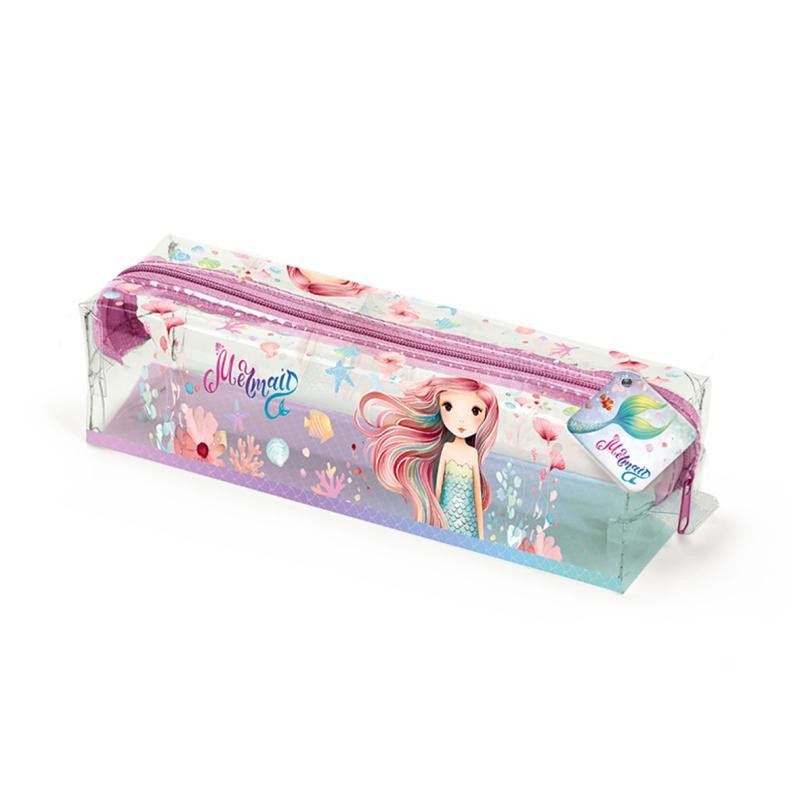 Průhledný penál, pouzdro na tužky nebo pera s potiskem Mermaid v designech školských linií ARGUS, vhodné i jako pouzdro na kosmetiku nebo jiné drobnosti pro ženy do kabelky.