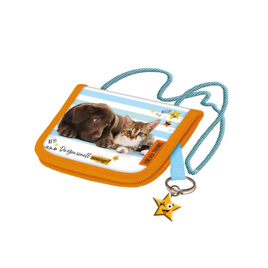 Peněženka se šňůrkou na krk a zapínáním na suchý zip. Rozměry 12 x 9 x 1cm.