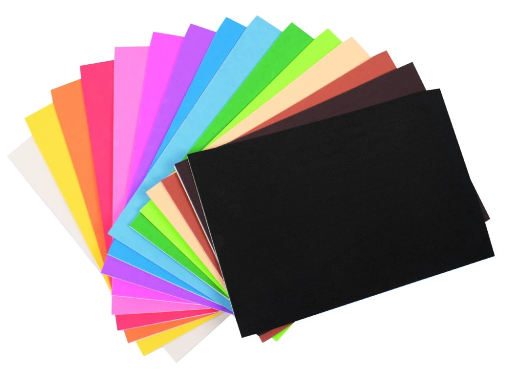 Barevná pěnovka - samolepicí, základní barvy, 15 ks v balení, tloušťka cca 2 mm.
