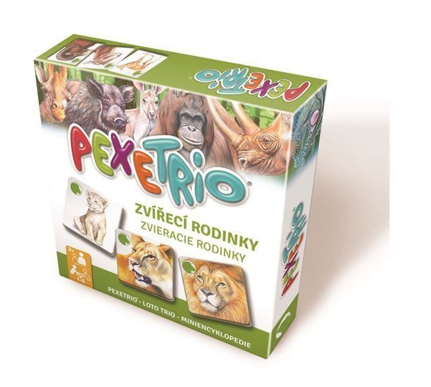 Pexetrio ZVÍŘECÍ RODINKY jsou zábavné hry inspirovaná pexesem, které děti zároveň i vzdělávají. Hráči se naučí pojmenovat a rozeznat u různých zvířat podobu samce, samice a mláděte podle hesla "škola hrou". Kromě toho, že si hráči osvojí rozeznávat tátu, mámu a dítě od různých zvířecích druhů zábavným způsobem, hra také napomáhá rozvíjet jejich logické myšlení a trénovat paměť hledáním trojic kartiček se zvířecími rodinkami.