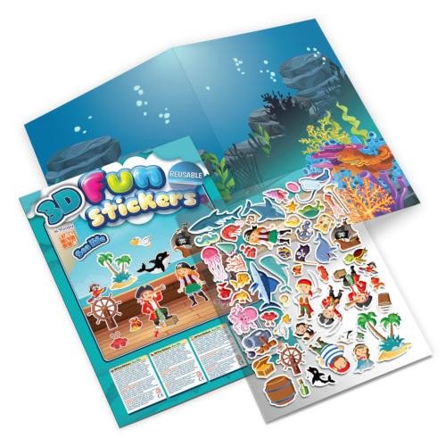 V moři plave delfín, velryba i chobotnice. Maličká rybka vyplula na hladinu a dívá se na obrovskou loď, která patří pirátům, kteří mají na palubě obrovský poklad. Dopřejte dětem zábavu, která nekončí, a rozvíjejte jejich představivost díky 3D samolepkám – inovativní novince se znovupoužitelnými samolepkami v provedení – Pirátské dobrodružství! Roztomilá příběhová sada obsahuje animované oboustranné A3 pozadí se scenériemi mořského dna a pirátské lodi a několik desítek znovu nalepovacích 3D pěnových samolepek. Potěší každého malého zvědavce, kterého zajímá, jak vypadá podmořský svět i život veselých pirátů brázdících širý oceán. 3D samolepky poskytují prostor pro neuvěřitelné množství příběhů, které se odehrávají přímo před očima dítěte. Je jejich autorem i vypravěčem. Žádné limity, žádná pravidla, jen úžasná dětská fantazie a představivost. Objevte i vy fantastické možnosti 3D samolepek! Formát: A4 (po otevření A3) Příběhová sada Pirátské dobrodružství s 3D samolepkami je skvělou zábavou pro předškoláky i malé školáky. Každé balení obsahuje oboustranné pozadí se dvěma barevnými scenériemi a desítky samolepek, které se postarají o magické tvůrčí a hravé chvilky. Barevné samolepky jsou z pěnového materiálu a dosahují fantastického 3D efektu. Lehce se odlepují a zpět přilepují, přičemž na ploše nezanechávají nepříjemné stopy po lepidle. BENEFITY: samolepky jsou opakovaně použitelné oboustranné pozadí poskytuje množství podnětů pro vytváření vlastních příběhů podpora jemné motoriky, představivosti, fantazie a prostorového vnímání dítěte nehrozí ztráta nálepek - součástí balení je i praktická a mimořádně odolná fólie pro samolepky, které dítě nepoužije při hraní ideální hračka doma i na cesty