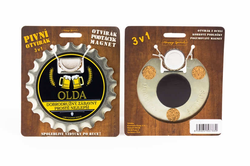 Otvírák ve tvaru velké pivní zátky je dobrou volbou pro všechny milovníky nejtradičnějšího českého nápoje. Navíc překvapí i dalšími možnostmi. Využijte jako podtácek, připněte na ledničku díky magnetu. Potěšte mužské ego lichotivými nápisy.Díky širokému výběru nejčetnějších mužských jmen a obecných rodinných názvů snadno najdete ten nejvhodnější pro vás.