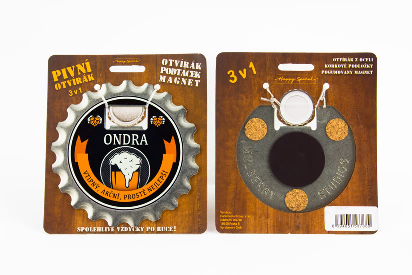 Otvírák ve tvaru velké pivní zátky je dobrou volbou pro všechny milovníky nejtradičnějšího českého nápoje. Navíc překvapí i dalšími možnostmi. Využijte jako podtácek, připněte na ledničku díky magnetu. Potěšte mužské ego lichotivými nápisy.Díky širokému výběru nejčetnějších mužských jmen a obecných rodinných názvů snadno najdete ten nejvhodnější pro vás.