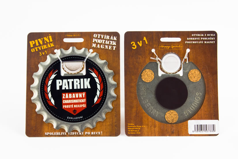 Otvírák ve tvaru velké pivní zátky je dobrou volbou pro všechny milovníky nejtradičnějšího českého nápoje. Navíc překvapí i dalšími možnostmi. Využijte jako podtácek, připněte na ledničku díky magnetu. Potěšte mužské ego lichotivými nápisy.Díky širokému výběru nejčetnějších mužských jmen a obecných rodinných názvů snadno najdete ten nejvhodnější pro vás.