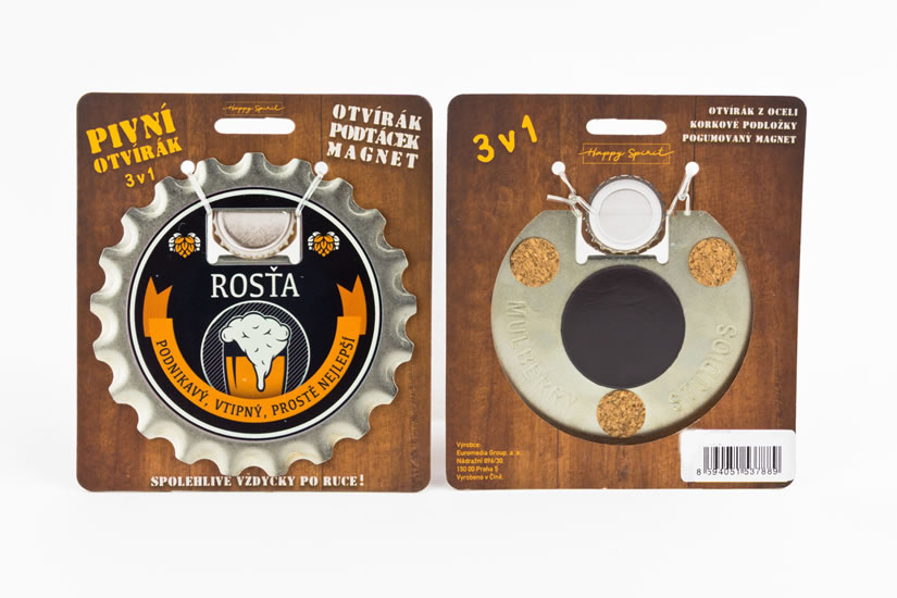 Otvírák ve tvaru velké pivní zátky je dobrou volbou pro všechny milovníky nejtradičnějšího českého nápoje. Navíc překvapí i dalšími možnostmi. Využijte jako podtácek, připněte na ledničku díky magnetu. Potěšte mužské ego lichotivými nápisy.Díky širokému výběru nejčetnějších mužských jmen a obecných rodinných názvů snadno najdete ten nejvhodnější pro vás.