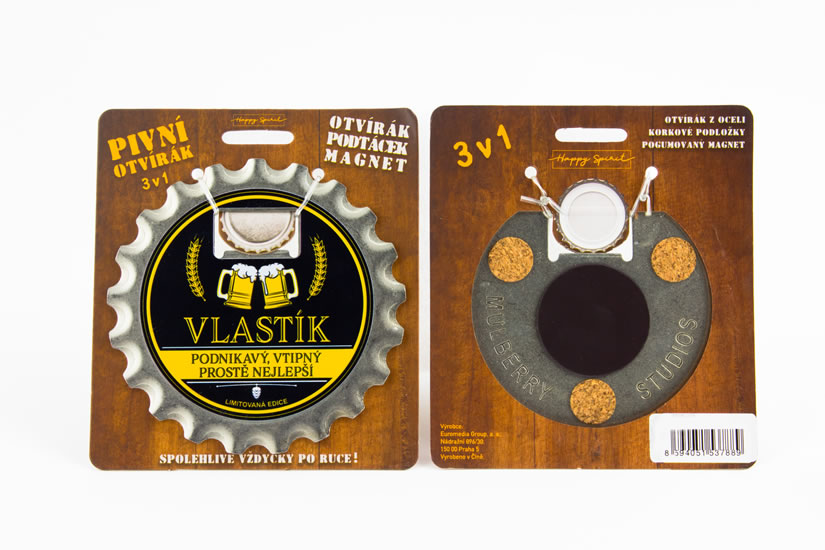 Otvírák ve tvaru velké pivní zátky je dobrou volbou pro všechny milovníky nejtradičnějšího českého nápoje. Navíc překvapí i dalšími možnostmi. Využijte jako podtácek, připněte na ledničku díky magnetu. Potěšte mužské ego lichotivými nápisy.Díky širokému výběru nejčetnějších mužských jmen a obecných rodinných názvů snadno najdete ten nejvhodnější pro vás.
