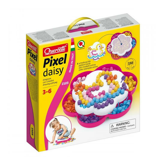 Velká děrovaná hrací deska ve tvaru kopretiny a přihrádky na jednotlivé kolíčky – to je vše, co potřebujete k vytváření nekonečného počtu mnohobarevných obrázků. Ve střední části schránky mohou být kolíčky promíchané, přihrádky po obvodu schránky slouží k roztřídění kolíčků podle šesti barev, abyste měli při skládání potřebnou barvu vždy po ruce. Díky třem přiloženým předlohám a několika dalším zdarma ke stažení si může každý po dlouhé hodiny krásně hrát při skládání úžasných obrázků. Takováto zábava navíc uvolňuje vaši mysl, zlepšuje koncentraci a u dětí stimuluje vnímání barev.